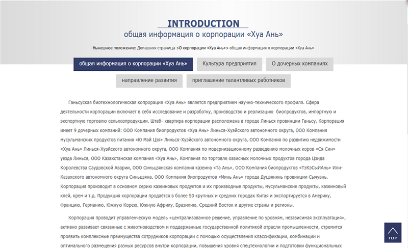 2015年4月中旬,甘肃某生物科技集团与我公司签订合同,委托我方为其提供公司网站的翻译并负责其阶段性的信息内容更新的翻译。该公司是一家集养殖基地建设、生物制品研发、生产、销售、农产品进出口贸易为一体的科技型企业集团,总部设在甘肃省临夏州,其产品远销海内外。该次网页翻译不仅包含公司简介、产品介绍、业务拓展及公司动态等相关信息,而且此次翻译不单单是语言文本的翻译,还涉及到色彩、图片等的处理以及对不同阅读习惯的考虑。高质量的翻译成果充分体现了我公司译员的专业能力及综合能力。